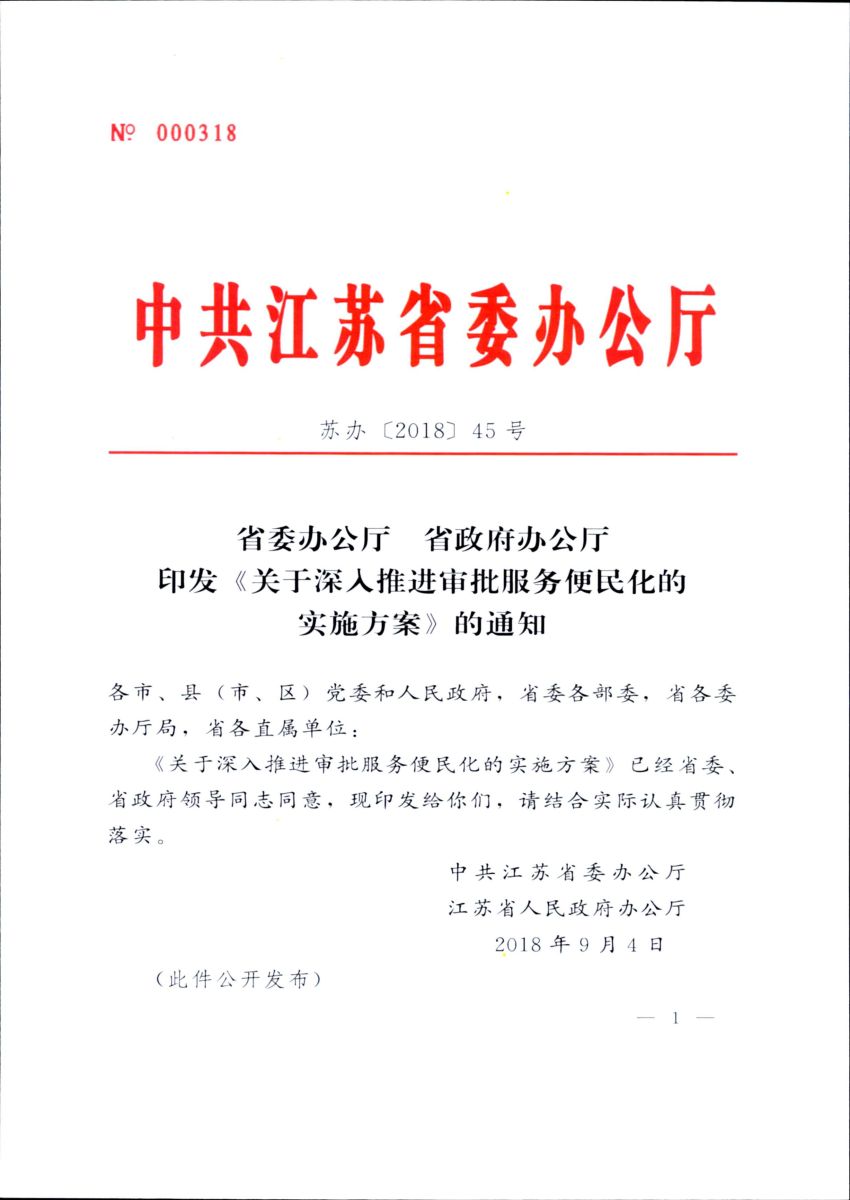 苏发[2018]45号 关于深入推进审批服务便民化的实施方案