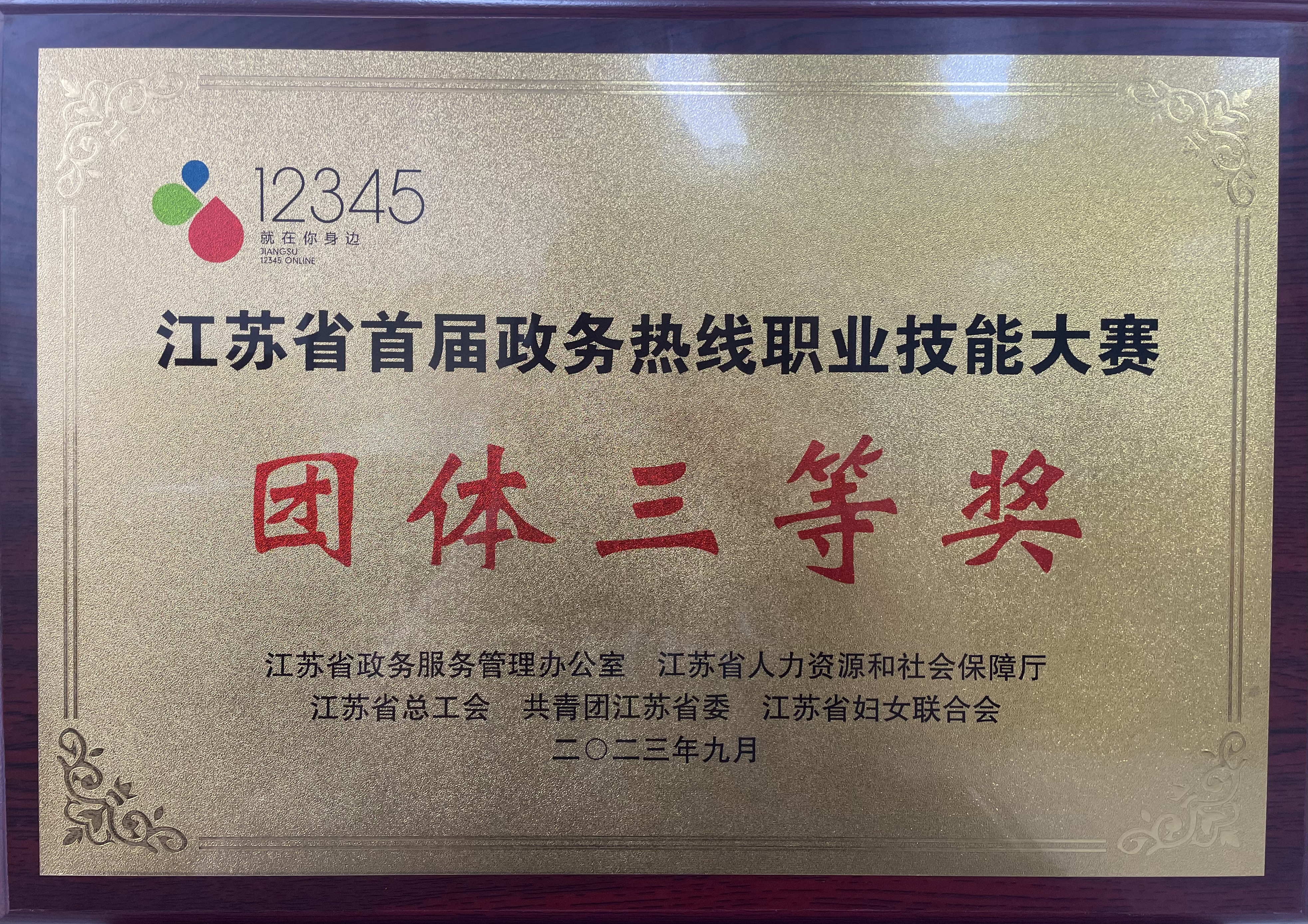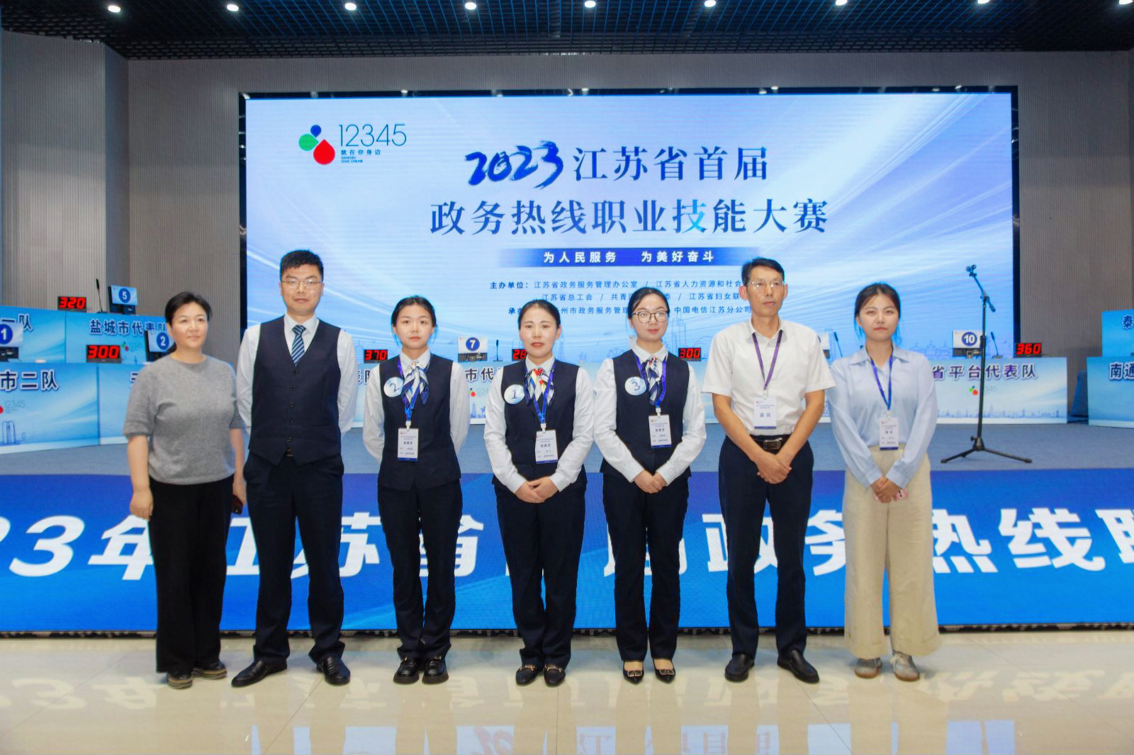 2023年9月23日,由江苏省政务办、江苏省人社厅、江苏省总工会、团江苏省委、江苏省妇联联合举办的全省首届政务热线职业技能大赛在扬州市成功举行。经过前期层层选拔,最终来自全省15支代表队60余名优秀选手参加决赛。其中,盐城市政务热线代表队获得团体三等奖,话务员施雯雅获得个人三等奖的荣誉。